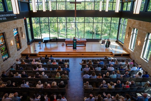 Opened in August 2023, the 300-seat Hasley Chapel was built in honor of St. Andrew’s late founding pastor Robert Hasley, who had long wished for a “chapel in the woods,” reminiscent of churches in his Arkansas hometown. The chapel, already home to St. Andrew’s Saturday evening traditional service, is unique for its panoramic views of lush trees and a creek below, which provide a peaceful setting surrounded by nature. Worshippers at the new Sunday morning service will also benefit from this scenic setting and closeness to nature while focusing on the church’s traditional roots, including liturgy and song with organ, hymns, and classical choral song from a vocal ensemble.